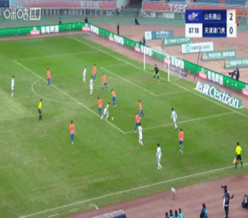 第88分钟,基莱斯利用个人能力连续扣过多名泰山球员之后射门得手,津门虎扳回一球,1-2!