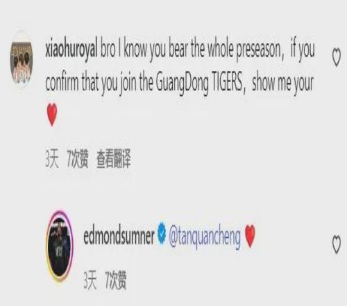 其实早在今年8月末,萨姆纳就在个人社媒转发了自己加盟广东队的报道,不过他很快删除了该条动态。