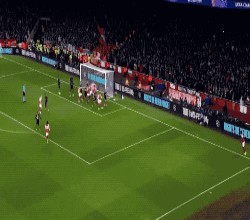 第22分钟,阿森纳获得角球,萨卡送出助攻,廷贝尔抢在诺伊尔出击前,将球顶进。