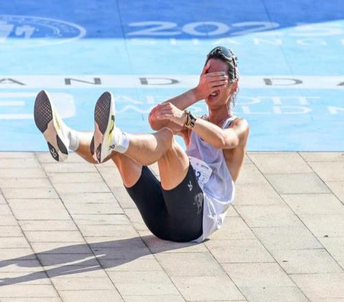 选手冲过终点后喜不自泣。澎湃新闻记者 朱伟辉 图