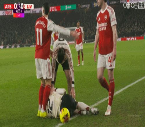 在1月9日凌晨进行的英超第21轮焦点战中,阿森纳主场0-0战平利物浦。然而,比赛尾声的一幕却让这场沉闷的对决蒙上阴影——阿森纳前锋加布里埃尔·马丁内利因对受伤倒地的利物浦小将康纳·布拉德利做出不当举动,引发轩然大波。
