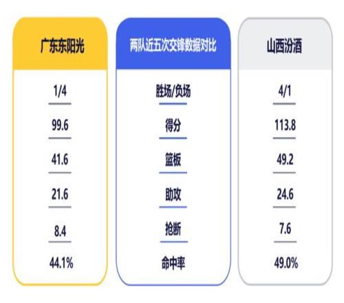 广东队近期取得两连胜,暂居联盟第三。山西队在上一轮不敌深圳后,位列第八。回顾双方上次交手,广东队在激烈对抗下利用极具压迫力的防守成功限制住了对手外线火力,最终依靠集体力量顶住反扑,客场拿下胜利。此番再战,山西队在首回合失利且张宁和焦海龙缺阵的情况下想必会做出针对性调整,再度出击,广东队需慎防对手变阵,充分准备,做好应变。